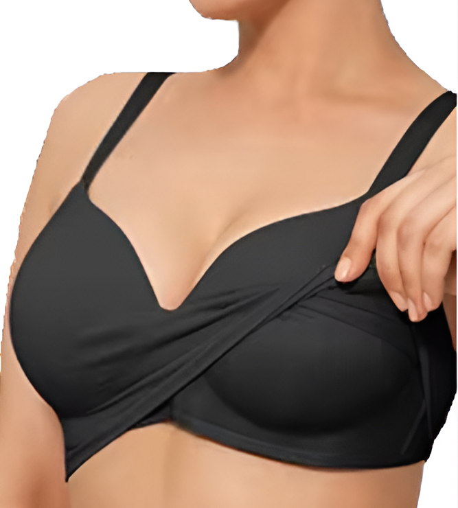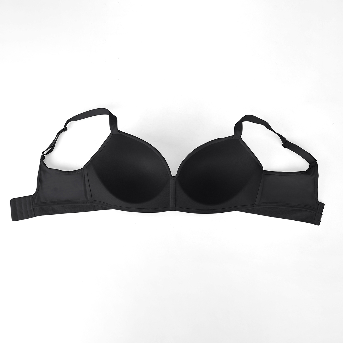 A wireless t-shirt bra designed for fuller busts, with a plunge neckline and a double-layer cup design for coverage and a clean finish. Light padding underneath and a smooth fabric layer on top are sewn together to stay in place, giving you shape, support, and zero show-through. Finished with wide adjustable straps and a wide closure for everyday comfort and fit flexibility.